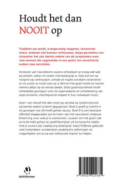 Deel 1 van Houdt het dan nooit op schetst de dysfunctionele dynamiek waarin je bent opgegroeid. Deel 2 geeft je inzicht in de gevolgen die dit heeft gehad op jou. Deel 3 is een bewezen effectief stappenplan om te helen van het narcistisch misbruik.