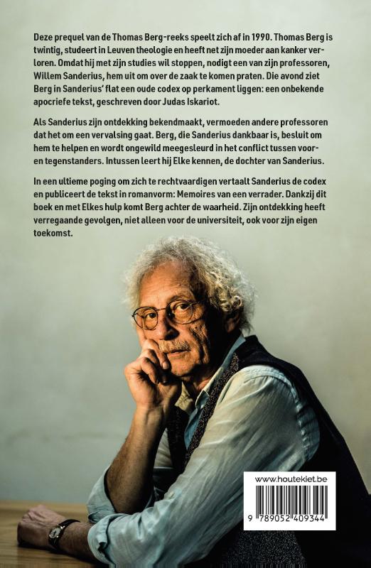 Deze prequel van de Thomas Berg-reeks speelt zich af in 1990. Thomas Berg is twintig, studeert in Leuven theologie en heeft net zijn moeder aan kanker verloren. Omdat hij met zijn studies wil stoppen, nodigt een van zijn professoren, Willem Sanderius, hem uit om over de zaak te komen praten. Die avond ziet Berg in Sanderius flat een oude codex op perkament liggen: een onbekende apocriefe tekst, geschreven door Judas Iskariot.