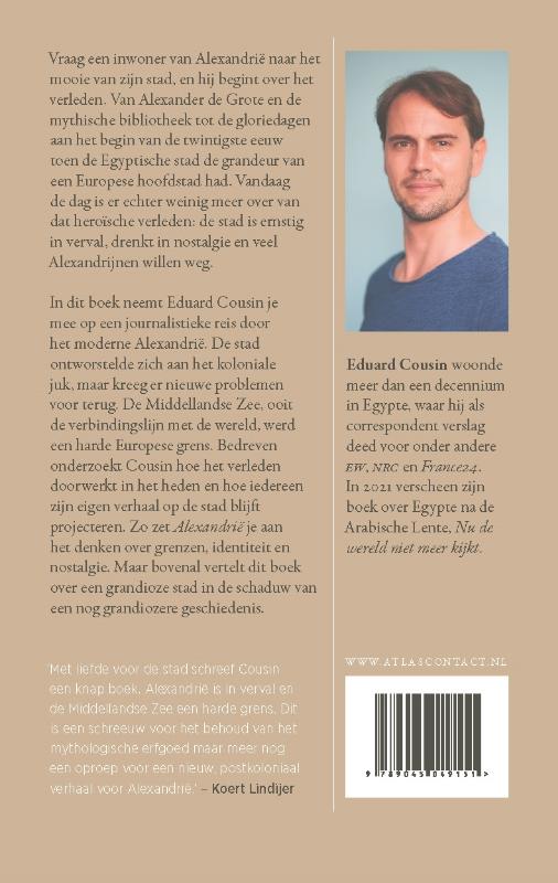 In dit boek neemt Eduard Cousin de lezer mee op een journalistieke reis door de moderne geschiedenis van Alexandrië. De stad ontworstelde zich aan het koloniale juk, maar kreeg er nieuwe problemen voor terug. De Middellandse Zee, ooit de verbindingslijn met de wereld, werd een harde Europese grens. Bedreven onderzoekt Cousin hoe de geschiedenis doorwerkt in het heden en hoe iedereen zijn eigen verhaal op de stad blijft projecteren. Alexandrië is een boek dat je aan het denken zet over culturele grenzen, identiteit en nostalgie. Maar bovenal vertelt het over een grandioze stad in de schaduw van een nog grandiozere geschiedenis.