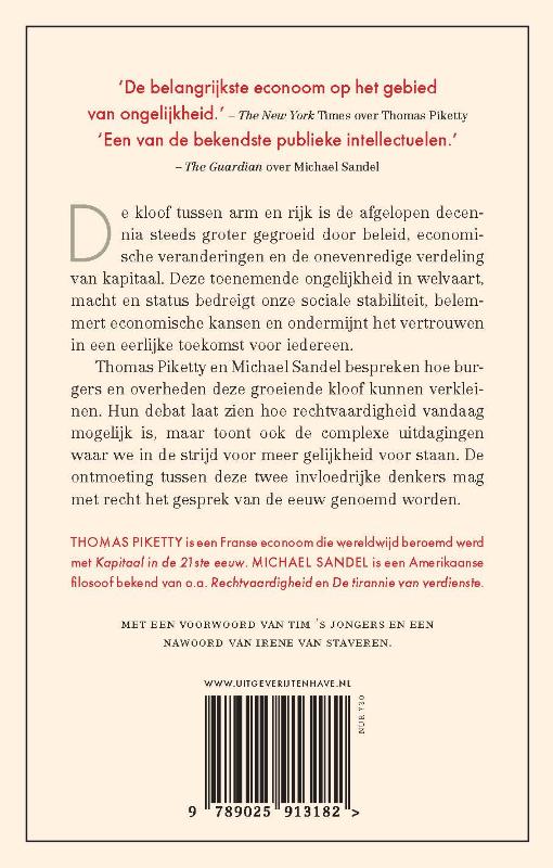 In dit baanbrekende boek bundelen de toonaangevende denkers Michael Sandel en Thomas Piketty hun krachten om een urgent maatschappelijk vraagstuk aan te pakken: de groeiende ongelijkheid. Ze onderzoeken diepgaand waarom de kloof tussen rijk en arm steeds groter wordt en welke onderliggende factoren hieraan ten grondslag liggen.
