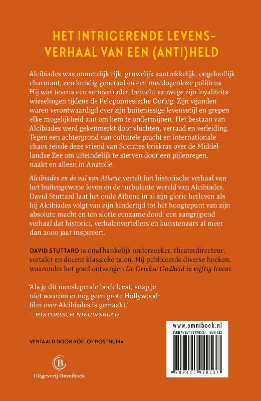 ‘Alcibiades en de val van Athene’ van classicus David Stuttard is de historische biografie van de Griekse (anti-)held Alcibiades. Hij werd rond 450 v.Chr. geboren in Athene. Alcibiades, ooit een volgeling en goede vriend van Socrates, was onmetelijk rijk, gruwelijk aantrekkelijk, ongelooflijk charmant, een kundige generaal en een meedogenloze politicus. Hij was tevens een beruchte serieverrader, die tijdens de Peloponnesische Oorlog overliep naar Sparta en vervolgens naar de Perzen. David Stuttard laat het oude Athene in al zijn glorie herleven als hij Alcibiades volgt van zijn kindertijd tot het hoogtepunt van zijn absolute macht, tegen een achtergrond van culturele pracht en internationale chaos.