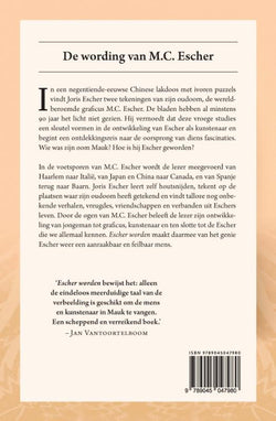 In de voetsporen van M.C. Escher wordt de lezer meegevoerd van Haarlem naar Italië, van Japan en China naar Canada, en van Spanje terug naar Baarn. Joris Escher leert zelf houtsnijden, tekent op de plaatsen waar zijn oudoom heeft getekend en vindt talloze nog onbekende verhalen, vreugdes, vriendschappen en verbanden uit Eschers leven. Door de ogen van M.C. Escher beleeft de lezer zijn ontwikkeling van jongeman tot graficus, kunstenaar en ten slotte tot de Escher die we allemaal kennen. Escher worden maakt daarmee van het genie Escher weer een aanraakbaar en feilbaar mens.