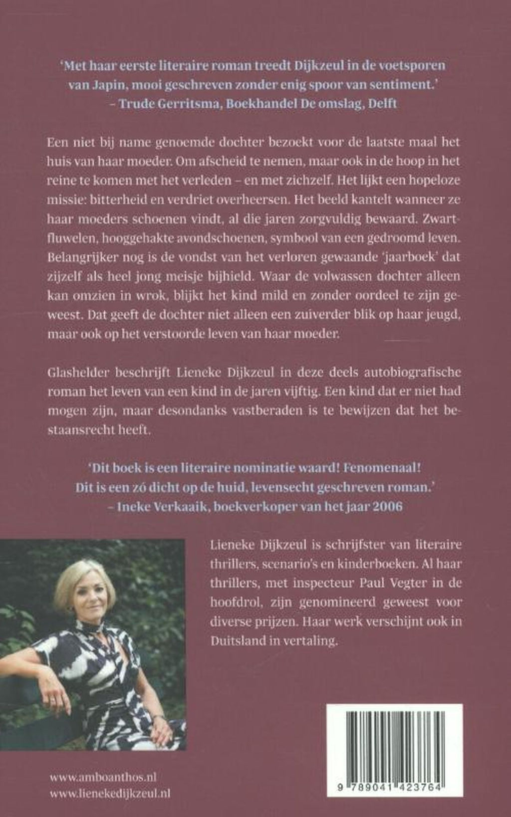 Een niet bij name genoemde dochter bezoekt voor de laatste maal het huis van haar moeder. Om afscheid te nemen, maar ook in de hoop in het reine te komen met het verleden en met zichzelf. Het lijkt een hopeloze missie; bitterheid en verdriet overheersen. Het beeld kantelt wanneer ze haar moeders schoenen vindt, vele jaren zorgvuldig bewaard. Zwartfluwelen, hooggehakte avondschoenen, symbool van een gedroomd leven. Belangrijker nog is de vondst van het verloren gewaande `jaarboek dat zijzelf als heel jong meisje bijhield. Waar devolwassen dochter alleen kan omzien in wrok, blijkt het kind mild en zonder oordeel te zijn geweest. Dat geeft haar niet alleen een zuiverder blik op haar jeugd, maar ook op het verstoorde leven van haar moeder. In glashelder en messcherp proza beschrijft Lieneke Dijkzeul in deze, deels autobiografische, roman het leven van een kind in de jaren vijftig. Een kind dat er niet had mogen zijn, maar desondanks vastberaden is te bewijzen dat het bestaansrecht heeft.