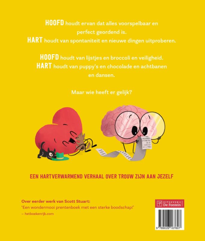 Hoofd houdt ervan dat alles voorspelbaar en perfect geordend is. Hart houdt van spontaniteit en nieuwe dingen uitproberen. Hoofd houdt van lijstjes en broccoli. Hart houdt van achtbanen en chocola. Maar wie heeft er gelijk?