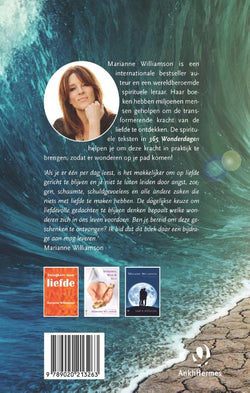 Marianne Williamson is een internationale bestseller auteur en een wereldberoemde spirituele leraar. Haar boeken hebben miljoenen mensen geholpen om de transformerende kracht van de liefde te ontdekken. De spirituele teksten in 365 Wonderdagen helpen je om deze kracht in praktijk te brengen, zodat er wonderen op je pad komen! 'Als je er één per dag leest, is het makkelijker om op liefde gericht te blijven en je niet te laten leiden door angst, zorgen, schaamte, schuldgevoelens en alle andere zaken die niets met liefde te maken hebben. De dagelijkse keuze om liefdevolle gedachten te blijven denken bepaalt welke wonderen zich in ons leven voordoen. Ben je bereid om deze ge-schenken te ontvangen? Ik bid dat dit boek daar een bijdrage aan mag leveren.' Marianne Williamson