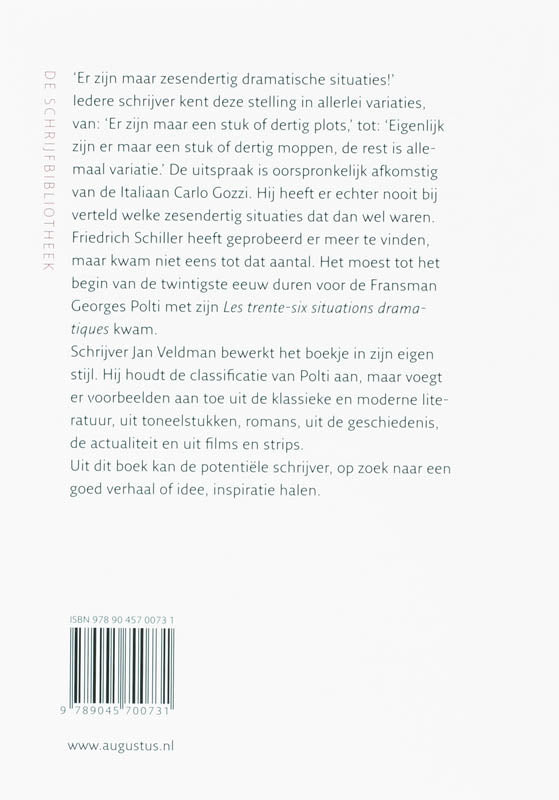 Schrijver Jan Veldman bewerkt het boekje in zijn eigen stijl. Hij houdt de classificatie van Polti aan, maar voegt er voorbeelden aan toe uit de klassieke en moderne literatuur, uit toneelstukken, romans, uit de geschiedenis, de actualiteit en uit films en strips.