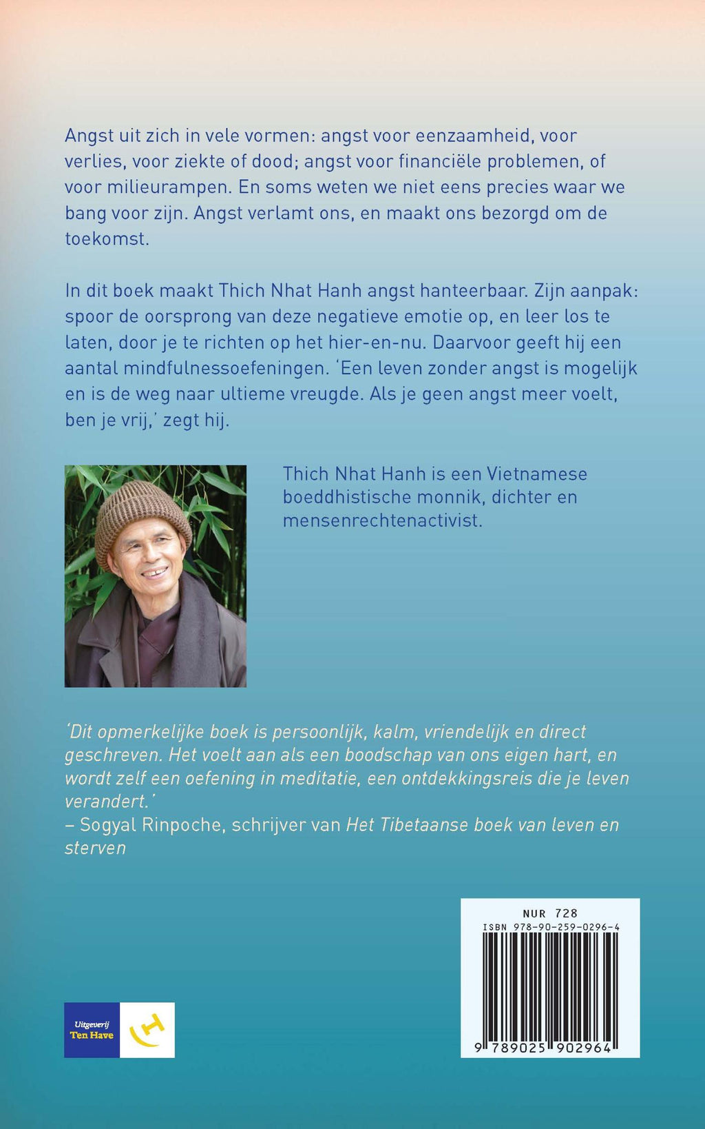 Angst beheerst het leven van velen: angst voor eenzaamheid, voor verlies, voor ziekte of dood. Vaak is niet eens duidelijk waar de angst vandaan komt. Angst verlamt, en daarom duwen we deze emotie het liefst ver weg. Thich Nhat Hanh laat zien dat erkenning angst hanteerbaar maakt. Zijn aanpak: spoor de oorsprong van deze negatieve emotie op, en leer los te laten. Zo kun je alle vormen van angst het hoofd bieden, op weg naar bevrijding en geluk. Mindfulnessoefeningen helpen daarbij.