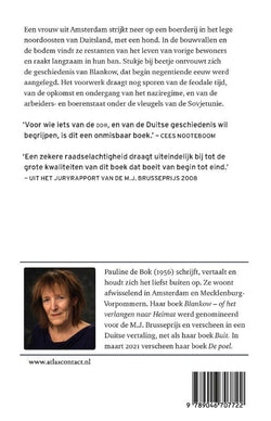 ‘Blankow’ van Pauline de Bok verschijnt in heruitgave. Een vrouw uit Amsterdam strijkt neer op een boerderij in het lege noordoosten van Duitsland, met een hond. In de bouwvallen en de bodem vindt ze restanten van het leven van vorige bewoners en raakt langzaam in hun ban. Stukje bij beetje ontvouwt zich de geschiedenis van Blankow, dat begin negentiende eeuw werd aangelegd. Het voorwerk draagt nog sporen van de feodale tijd, van de opkomst en ondergang van het naziregime, en van de arbeiders- en boerenstaat onder de vleugels van de Sovjetunie.