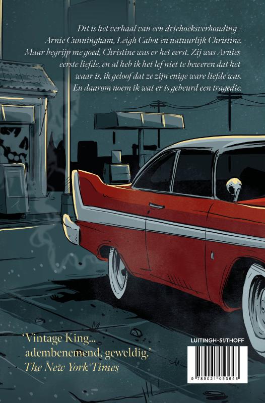 De klassieke Amerikaanse thriller Christine van meesterverteller Stephen King, is een verhaal over tienerverlangens, obsessies en schoolperikelen. Met origineel artwork van Menze Kwint, dubbelzijdig bedrukt omslag en bedrukt boekblok.