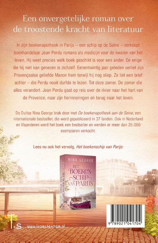 In zijn boekenapotheek in Parijs – een schip op de Seine – verkoopt boekhandelaar Jean Perdu romans als medicijn voor de kwalen van het leven. Hij weet precies welk boek geschikt is voor een ander. De enige die hij niet kan genezen is zichzelf. Eenentwintig jaar geleden verliet zijn Provençaalse geliefde Manon hem terwijl hij nog sliep. Ze liet een brief achter - die Perdu nooit durfde te lezen. Tot deze zomer. De zomer die alles verandert. Jean Perdu gaat op reis over de rivier naar het hart van de Provence, naar zijn herinneringen en terug naar het leven.