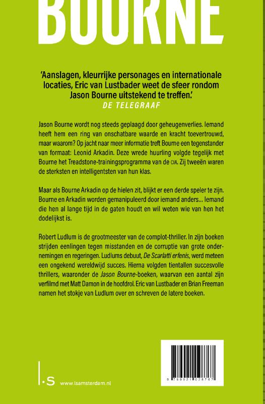 Robert Ludlum is de grootmeester van de complot-thriller. In zijn boeken strijden eenlingen tegen misstanden en de corruptie van grote ondernemingen en regeringen. Ludlums debuut, De Scarlatti erfenis, werd meteen een ongekend wereldwijd succes. Hierna volgden tientallen succesvolle thrillers, waaronder de Jason Bourne-boeken, waarvan een aantal zijn verfilmd met Matt Damon in de hoofdrol. Eric van Lustbader en Brian Freeman namen het stokje van Ludlum over en schreven de latere boeken.