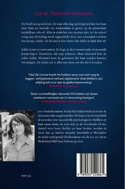 Addie is niet te vertrouwen. Ze liegt, ze doet mensen pijn en ze maakt levens kapot. Tenminste, dat zegt iedereen. Maar niemand kent de echte Addie. Niemand kent de geheimen die haar zouden kunnen vernietigen. En Addie zal er alles aan doen om die stil te houden.