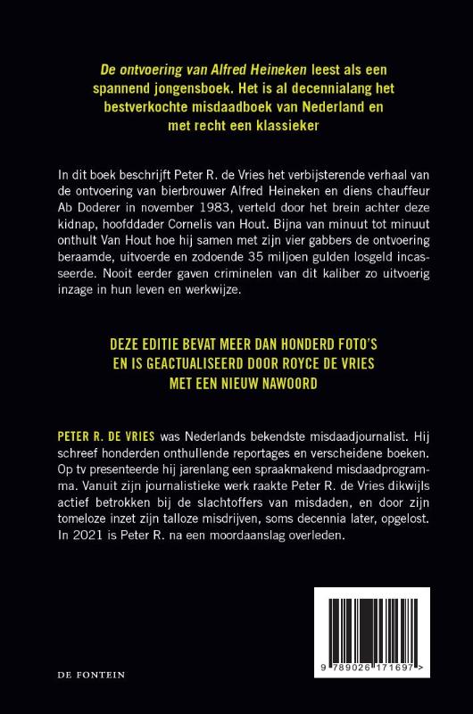 De geïllustreerde editie van deze klassieker, met niet eerder getoond materiaal. Inclusief nieuw nawoord van Royce de Vries. Het verbijsterende verhaal van de ontvoering van bierbrouwer Alfred Heineken en diens chauffeur Ab Doderer. Bijna van minuut tot minuut wordt onthuld hoe de ontvoering beraamd en uitgevoerd werd, en hoe zodoende 35 miljoen gulden losgeld werd geïncasseerd. Nooit eerder kreeg de lezer zo uitvoerig inzage in het leven en de werkwijze van criminelen van dit kaliber.