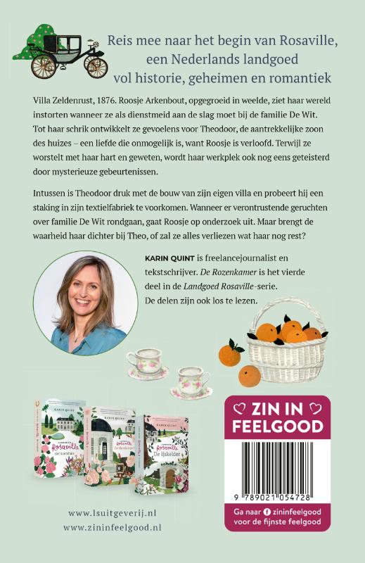 Ontdek de wervelende geschiedenis van Landgoed Rosaville in het slotdeel van de serie: De Rozenkamer. Een fantastische roman vol historie, geheimen en romantiek van feelgood-auteur Karin Quint. De delen zijn ook los te lezen.