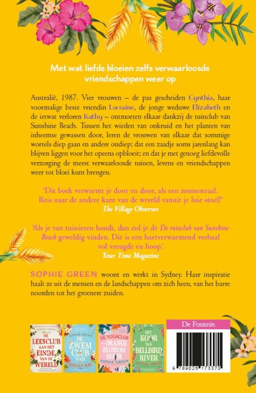 Lees ook Sophie Greens andere heerlijke romans over vrouwenvriendschappen in Australië: De leesclub aan het einde van de wereld, De zwemclub van Shelly Bay, De yogaclub van Orange Blossom House en Het koor van Bellbird River.