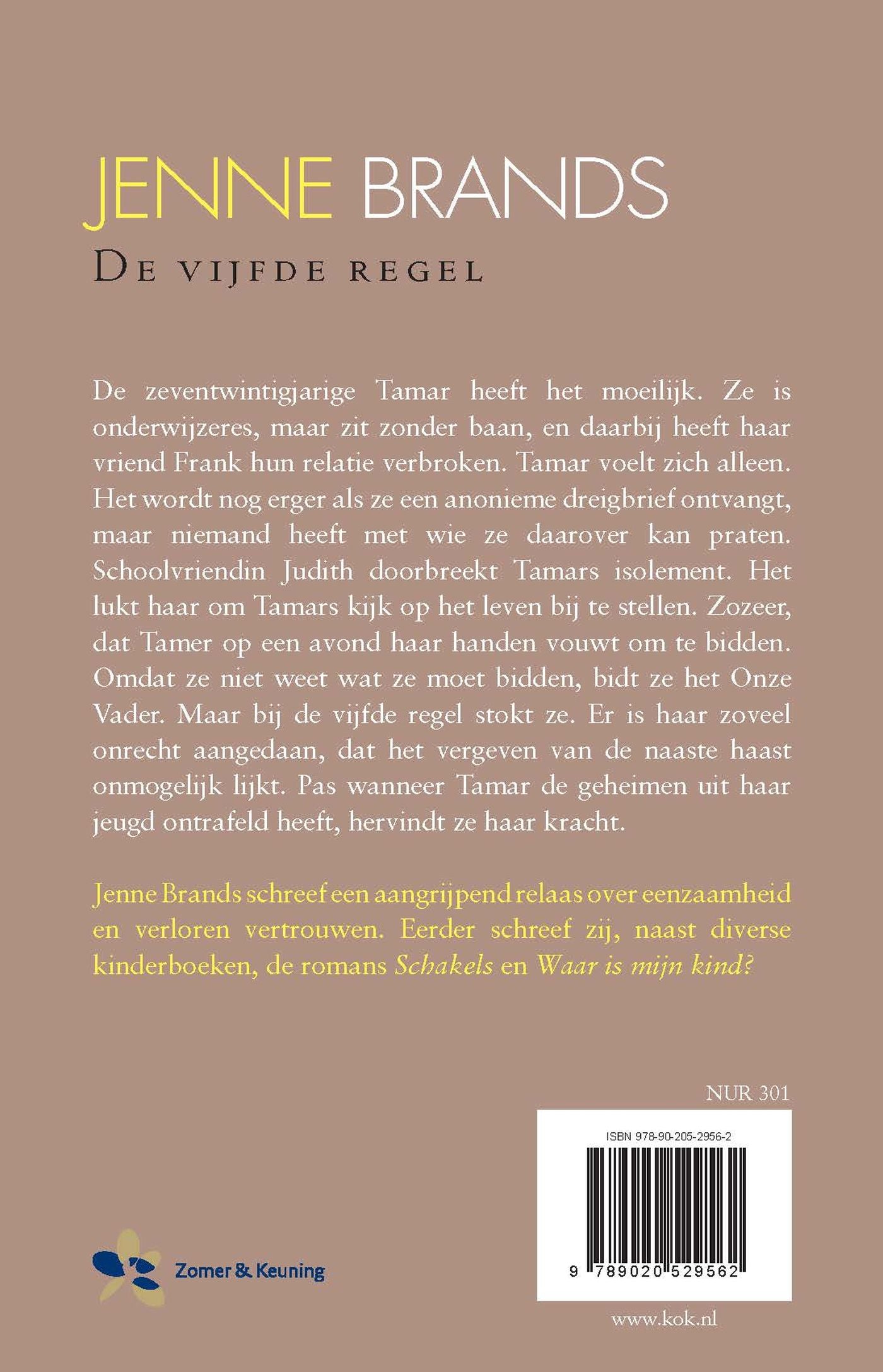 Dan krijgt ze een anonieme dreigbrief. De schrijver bedreigt haar niet alleen, maar hij beschuldigt haar ook van een gruwelijke gebeurtenis.Tamar weet dat ze in die zaak geen schuld heeft. Helaas heeft ze niemand waarmee ze over de brief kan praten. Schoolvriendin Judith doorbreekt Tamars isolement. Veel lijkt daarna anders, zelfs haar relatie tot Frank. Op een avond probeert ze te bidden. Omdat ze niet weet wat te zeggen, bidt ze Het Onze Vader. Maar bij de vijfde regel stokt ze. Vergeven! Iedereen alles vergeven? Dat kan ze niet. Haar is te veel onrecht aangedaan. Maar is alles wel zo gegaan als haar verteld is? Ze wil de waarheid weten. Samen met Judith gaat ze op zoek.