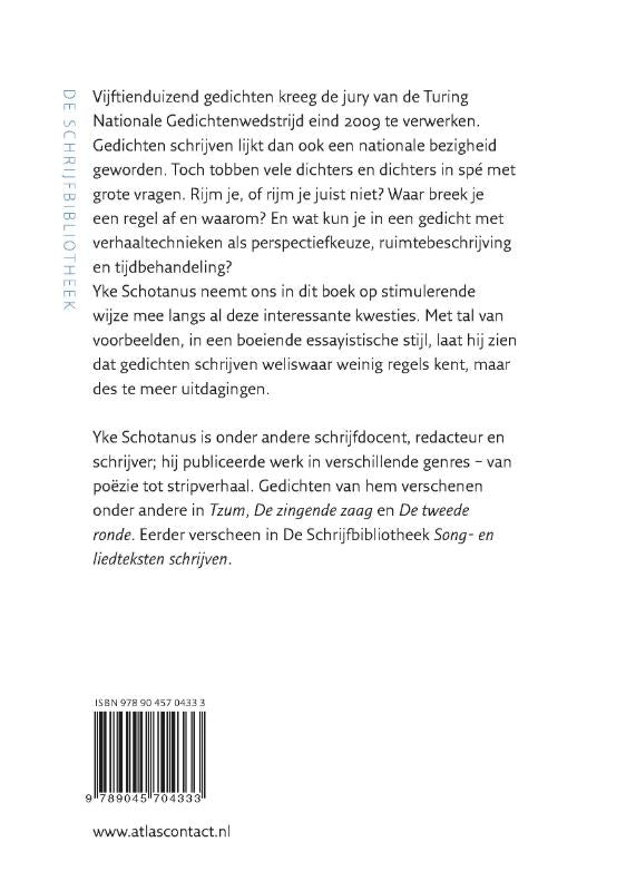 Vijftienduizend gedichten kreeg de jury van de Turing Nationale Gedichtenwedstrijd te verwerken. Gedichten schrijven lijkt dan ook een nationale bezigheid geworden. Toch tobben vele dichters en dichters-in-spe met grote vragen. Rijm je, of rijm je juist niet? Waar breek je een regel af en waarom? En wat kun je in een gedicht met verhaaltechnieken als perspectiefkeuze, ruimtebeschrijving en tijdbehandeling.