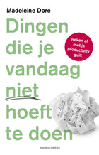In ‘Dingen die je vandaag niet hoeft te doen’ vertelt Madeleine Dore hoe het kan dat je de hele dag bezig bent taken van je to-dolijst af te vinken. Om zo veel mogelijk voor elkaar te krijgen probeer je efficiënt te werken; je bent voortdurend op zoek naar de handigste manier van plannen of naar hét systeem dat ervoor zorgt dat je geen taken meer vergeet. En toch heb je aan het einde van de dag altijd weer het knagende gevoel dat je tekort bent geschoten. Herkenbaar? Dan heb je last van ‘productivity guilt’.