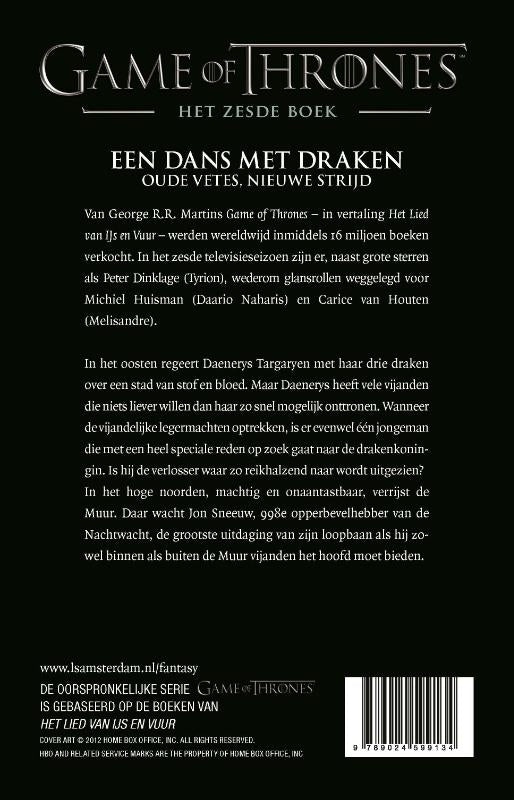 Een Dans met Draken – Oude Vetes, Nieuwe Strijd is het zesde deel in bestsellerauteur George R.R. Martins Game of Thrones-serie (Het Lied van IJs en Vuur). Er zijn wereldwijd meer dan 75 miljoen boeken van de reeks verkocht. In de tv-serie van HBO spelen onder andere Michiel Huisman (Daario Naharis) en Carice van Houten (Melisandre) een grote rol.