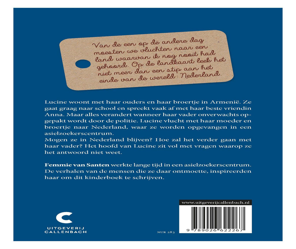 'Een stip aan het einde van de wereld' is een aangrijpend kinderboek van Femmie van Santen. Hoe is het wanneer je als meisje van elf jaar plotseling moet vluchten naar een land waarvan je nog nooit hebt gehoord? Wanneer je alles moet achterlaten: je school, je beste vriendin, en je familie? Dat overkomt Lucine. Als haar vader in Armenië gevangen wordt genomen, komt ze, samen met haar moeder en broertje, in een AZC in Nederland terecht. Het leven daar is niet gemakkelijk, en Lucine mist haar vader. Zal ze hem ooit nog terugzien?