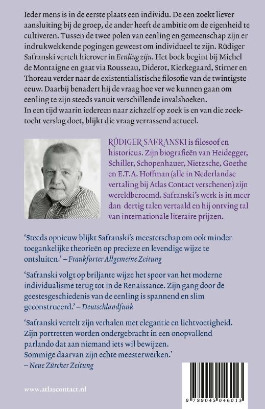 Safranski begint bij Michel de Montaigne, en gaat via Rousseau, Diderot, Kierkegaard, Max Stirner en Thoreau verder naar de existentialistische filosofie van de twintigste eeuw. Daarbij benadert hij de vraag hoe ver we kunnen gaan om eenling te zijn, steeds vanuit verschillende invalshoeken. In een tijd waarin iedereen naar zichzelf op zoek is en van die zoektocht verslag doet, blijkt die vraag verrassend actueel.