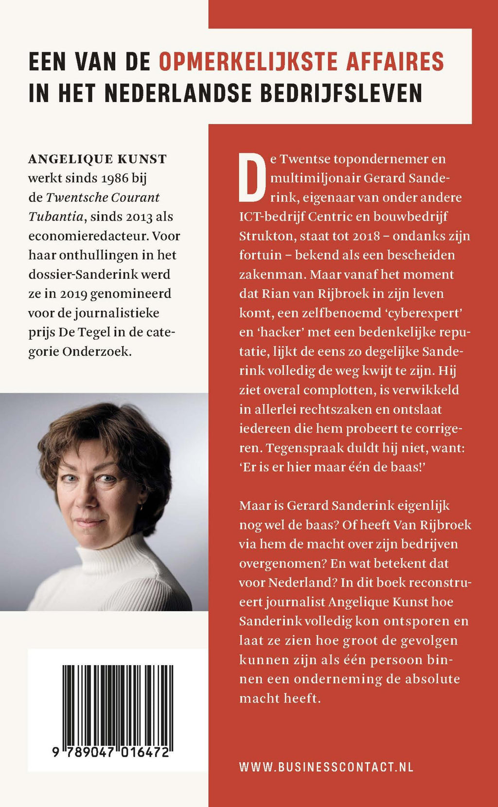 Maar is Gerard Sanderink eigenlijk nog wel de baas? Of heeft Van Rijbroek via hem de macht over zijn bedrijven overgenomen? En wat betekent dat voor Nederland? In dit boek reconstrueert Kunst hoe Sanderink volledig kon ontsporen en laat ze zien hoe groot de gevolgen kunnen zijn als één persoon binnen een onderneming de absolute macht heeft.