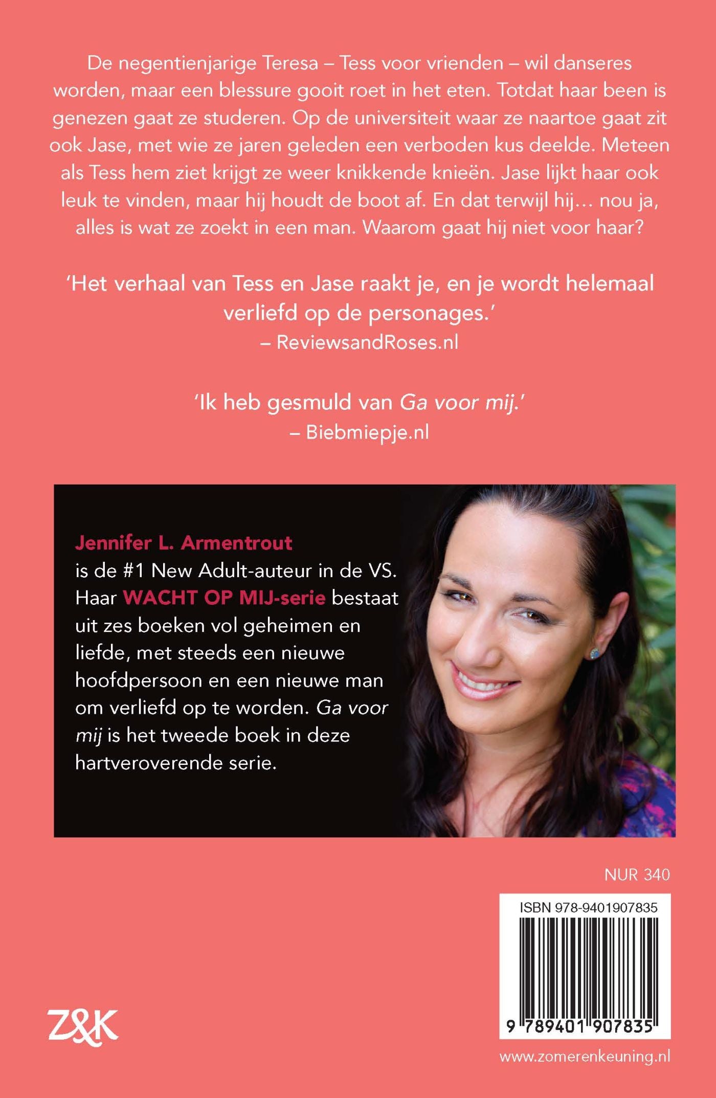 Ga voor mij (Engelse titel: Be with me) is broeierig en meeslepend, precies zoals een new adult hoort te zijn. Auteur J. Armentrout is in Nederland bekend van de boeken Wacht op mij en IJskoud. Ga voor mij is een zijdelings vervolg op Wacht op mij, waarin Teresa’s broer Cam de hoofdrol speelde.