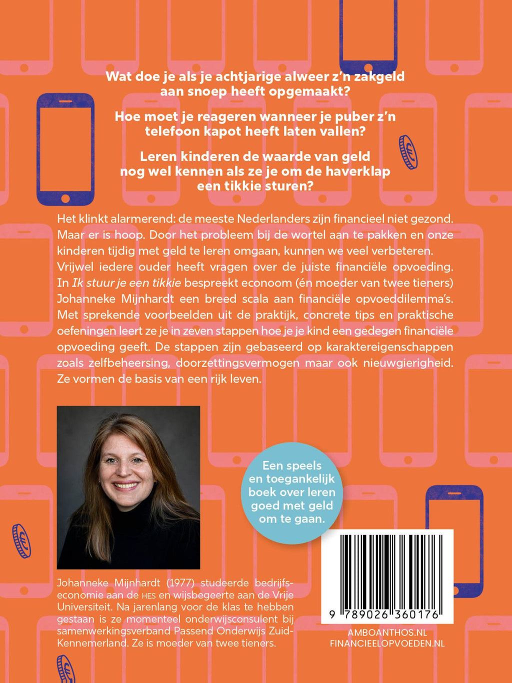 Ik stuur je een tikkie van Johanneke Mijnhardt is een speels en toegankelijk boek over hoe je kinderen leert goed met geld om te gaan. Voor alle ouders met kinderen van ongeveer 6 tot 18 jaar.