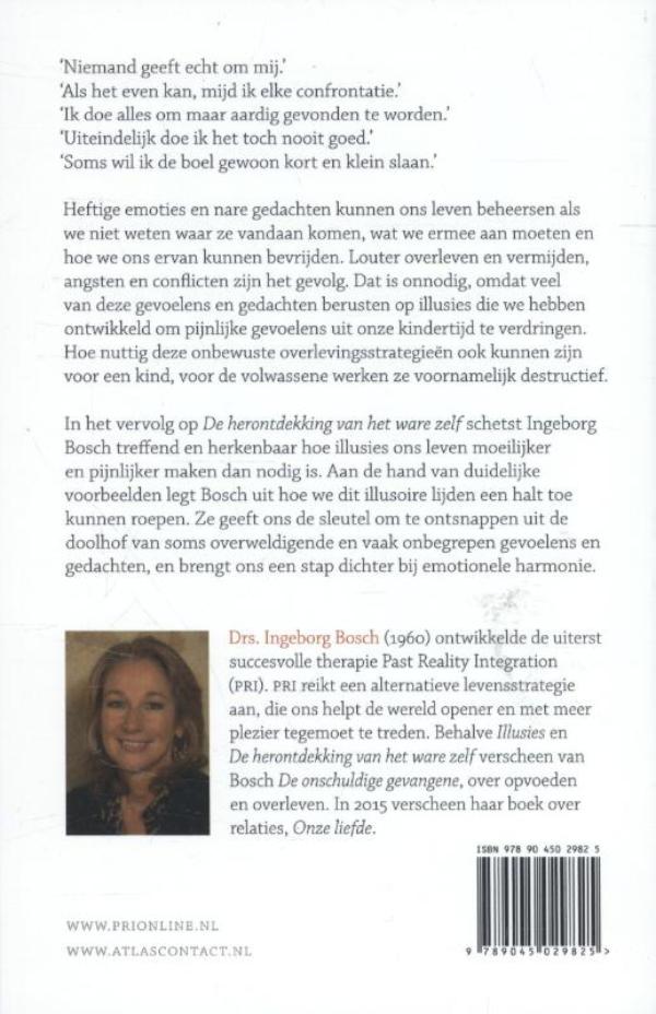 Drs. Ingeborg Bosch (1960) ontwikkelde de uiterst succesvolle therapie Past Reality Integration (pri), die uitgaat van de gedachte dat wij overleven dankzij verdringing en ontkenning van de waarheid. pri reikt een alternatieve levensstrategie aan, die ons helpt de wereld opener en met meer plezier tegemoet te treden. Psychologen over de hele wereld maken dankbaar gebruik van de methode; en van de boeken van Ingeborg Bosch worden er jaarlijks duizenden verkocht, tot op heden meer dan 50.000.