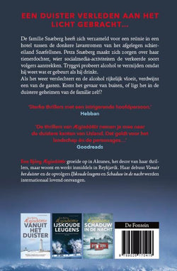 In nevelen gehuld is het vierde boek in de IJslandse moorden-serie van Eva Björg AEgisdóttir, na Vanuit het duister, IJskoude leugens, en Schaduw in de nacht, en wordt gevolgd door deel 5: Sneeuwblind.