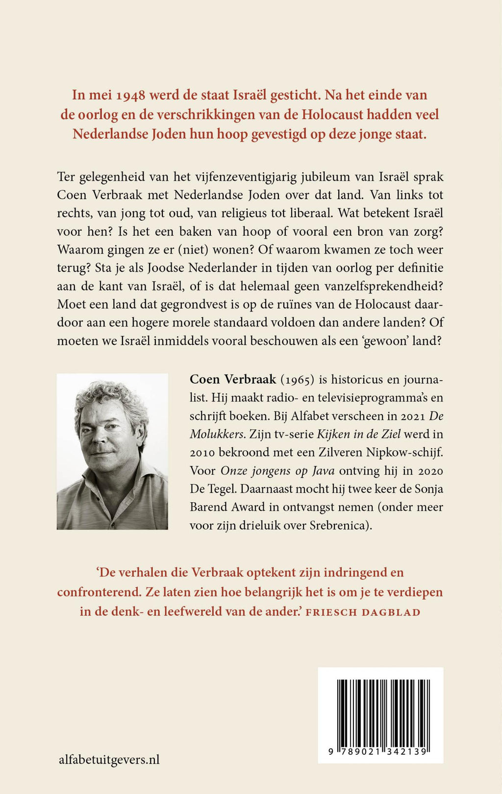 75 jaar geleden werd de staat Israël gesticht. Ter gelegenheid daarvan sprak Coen Verbraak met een breed palet aan mensen; van jong tot oud, bekend en onbekend. Maar allemaal hebben ze diezelfde liefde voor Israël. Waarom gingen ze er wonen? En waarom keerden sommigen toch weer terug? Sta je als Joodse Nederlander per definitie aan de kant van Israël, of is dat geen vanzelfsprekendheid? Verbraak tekent verhalen op over hoopvolle tijden en bange dagen. Hij spreekt getuigen van de Zesdaagse Oorlog, de aanslagen op de Olympische Spelen, het Eichmann-proces en de Intifada. Hij schrijft over Sabra en Shatila en de geheime dienst Mossad. Dit boek is niet alleen een portret van Israël door de ogen van Nederlandse Joden, maar ook een portret van de Joodse gemeenschap in Nederland.