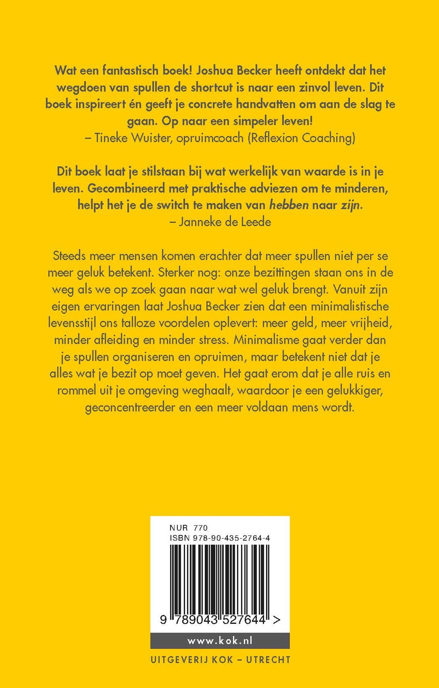 ‘Meer door minder’ is een inspirerend boek van Joshua Becker over het creëren van ruimte in je huis, je leven, je hoofd en je bezit. Becker laat zien dat een minimalistische levensstijl geworteld is in eeuwenoude theorieën en methodes over afstand doen van bezit. Door alle ruis en rommel uit zijn omgeving weg te halen, is Becker een gelukkiger, geconcentreerder en een meer tevreden mens geworden. Het opruimen van alles wat overbodig is geeft letterlijk en figuurlijk ruimte in je leven!