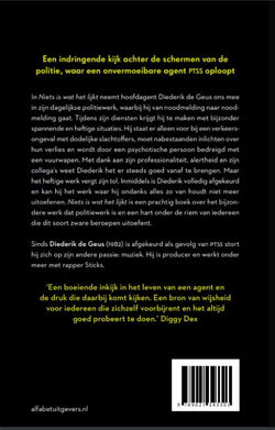 Niets is wat het lijkt is een prachtig boek over het bijzondere werk dat politiewerk is. Met dit boek steekt Diederik een hart onder de riem van iedereen die dit soort zware beroepen uitoefent. Wie het leest zal voor altijd met meer bewondering kijken naar agenten en andere noodhulpverleners en dat is in deze tijd hoognodig.