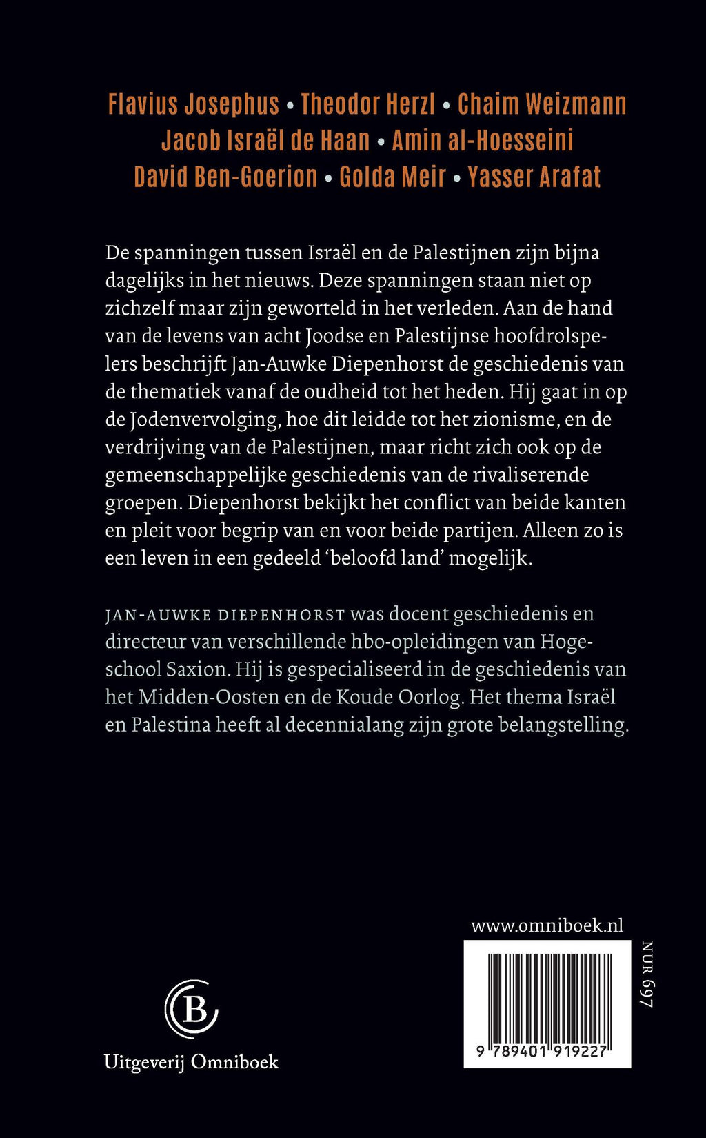 ‘Rivalen in het beloofde land’ van Jan-Auwke Diepenhorst vertelt de geschiedenis van de lange strijd tussen Joden en Palestijnen, die al sinds de oudheid samen het gebied bewoonden dat voor beiden ‘het beloofde land’ werd. Aan de hand van acht biografieën van belangrijke voorvechters voor een eigen staat beschrijft ‘Rivalen in het beloofde land’ chronologisch hun geschiedenis van de oudheid tot nu. Deze voorvechters zijn Flavius Josephus, Theodor Herzl, Chaim Weizmann, Jacob Israël de Haan, Moefti Amin al-Hoesseini, David Ben-Goerion, Golda Meir en Yasser Arafat.