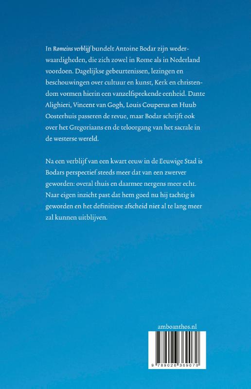 Na een verblijf van een kwart eeuw in de Eeuwige Stad is Bodars perspectief steeds meer dat van een zwerver geworden: overal thuis en daarmee nergens meer echt. Naar eigen inzicht past dat hem goed nu hij tachtig is geworden en het definitieve afscheid niet al te lang meer zal kunnen uitblijven.