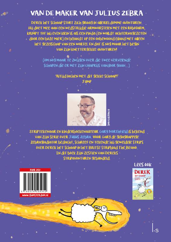 Derek het schaap van Gary Northfield (bekend van Julius Zebra) beleeft knettergekke avonturen in Schaap in de ruimte, het los te lezen vervolg op Een zoem voor jou. Deze supergrappige fullcolour-graphic novels over het gekste schaap ter wereld krijgen zelfs niet-lezers aan het lezen!