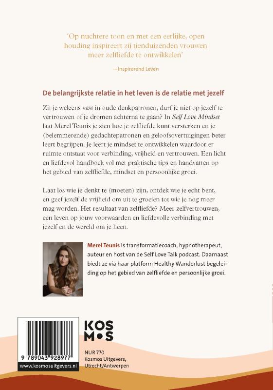 De vriendelijke en nuchtere toon en de persoonlijke ervaringen van Merel spreken online al duizenden vrouwen aan. In haar boeken diept ze het onderwerp zelfliefde verder uit en laat ze zien hoe zelfcompassie de basis vormt voor zelfvertrouwen, innerlijke rust en liefdevolle verbinding. Een hand vol met praktische tips en handvatten op het gebied van zelfliefde, mindset en persoonlijke groei. Voor meer zelfvertrouwen, innerlijke rust en kracht.