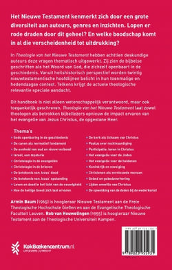 Theologie van het Nieuwe Testament, onder redactie van Armin Baum en Rob van Houwelingen, is een thematisch opgezet handboek, bestemd voor afgestudeerde theologen en theologische studenten, maar zeker ook voor betrokken bijbellezers. Het is het resultaat van een uniek samenwerkingsproject tussen Nederlands- en Duitstalige nieuwtestamentici, afkomstig uit diverse stromingen binnen het protestantisme en werkzaam aan theologische opleidingen in Nederland, België, Groot-Brittannië, Duitsland en Zwitserland. De auteurs zien de bijbelse geschriften als het Woord van God, die zichzelf openbaart in de geschiedenis. Daarom is gekozen voor een heilshistorisch perspectief, waarmee de nieuwtestamentische boodschap ook vandaag nog klinkt.