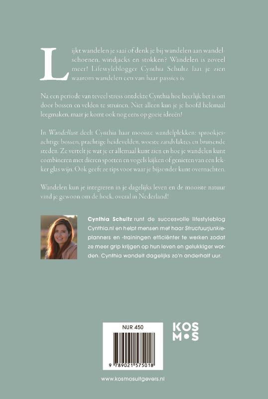 In haar boek Wandellust laat lifestyleblogger Cynthia Schultz je zien hoe leuk wandelen is. Wandellust is een heerlijk inspiratieboek vol prachtige wandelplekken. Denk je bij wandelen aan wandelschoenen, windjacks en stokken? Er is meer! Wandelen is óók heerlijk als je er geen sport van maakt. Het is eenvoudig, je hebt er weinig voor nodig en het kan overal. Je hoofd waait leeg en lopen is goed voor lijf en brein. Wandelen is makkelijk te integreren in je dagelijkse leven, en hoe heerlijk is het om Nederland te voet te ontdekken? Krijg jij al #wandellust?