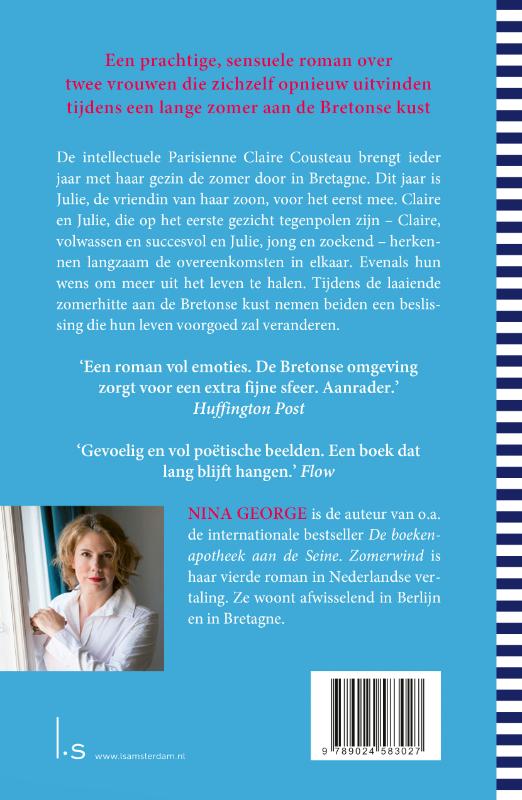 In Zomerwind van Nina George brengt de intellectuele Parisienne Claire Cousteau net als ieder jaar met haar gezin de zomer door in Bretagne. Dit jaar is Julie, de vriendin van haar zoon Nicolas, voor het eerst mee.