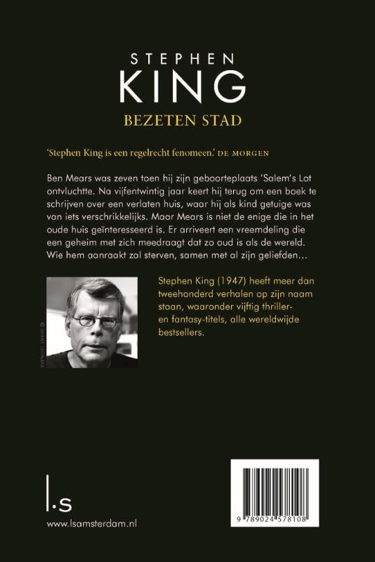 Met Bezeten stad, zijn tweede roman, vestigde Stephen King definitief zijn naam als de onbetwistbare koning van de Amerikaanse horror. Als geen ander wist hij het genre nieuw leven in te blazen en angstaanjagender te maken door zijn verhalen te laten plaatsvinden op herkenbare, idyllische locaties.