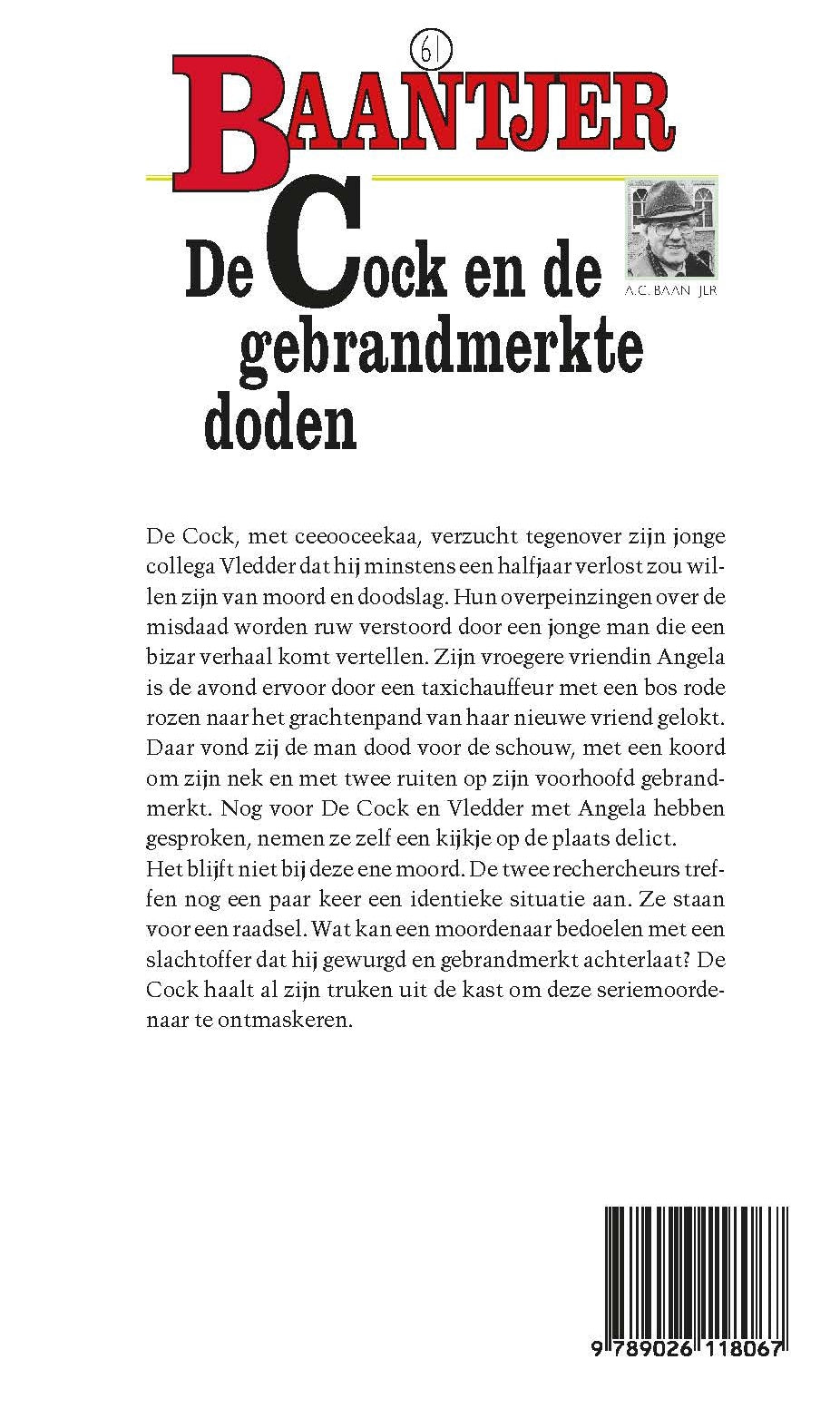 Het blijft niet bij deze ene moord. De rechercheurs treffen nog een paar keer een identieke situatie aan. Ze staan voor een raadsel. Wat kan een moordenaar bedoelen met een slachtoffer dat hij gewurgd en gebrandmerkt achterlaat? De Cock haalt al zijn trucs uit de kast om deze seriemoordenaar te ontmaskeren.