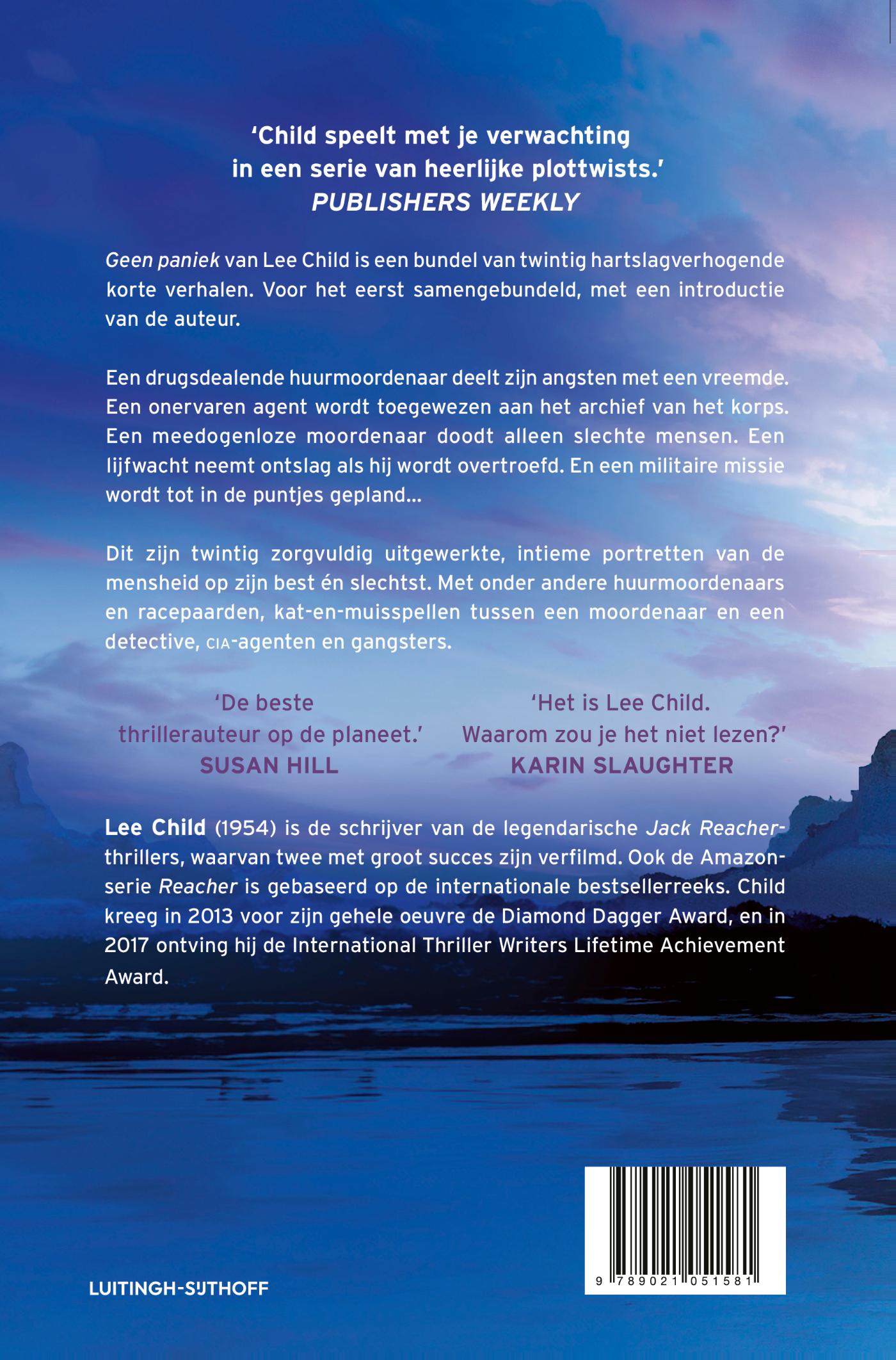 Geen paniek van Lee Child is een bundel van twintig hartslagverhogende korte verhalen. Voor het eerst samen gebundeld, met een introductie van de auteur.