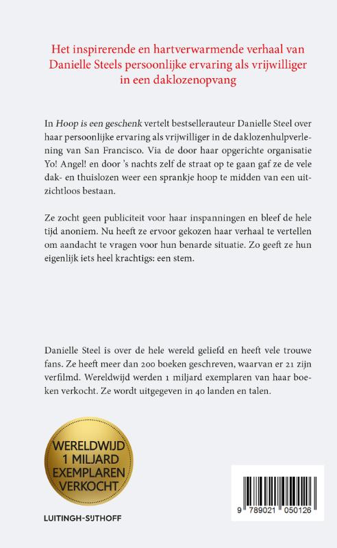 In Hoop is een geschenk vertelt bestsellerauteur Danielle Steel over haar persoonlijke ervaring als vrijwilliger in de daklozenhulpverlening van San Francisco. Via de door haar opgerichte organisatie Yo! Angel! en door 's nachts zelf de straat op te gaan gaf ze vele dak- en thuislozen weer een sprankje hoop te midden van een uitzichtloos bestaan.