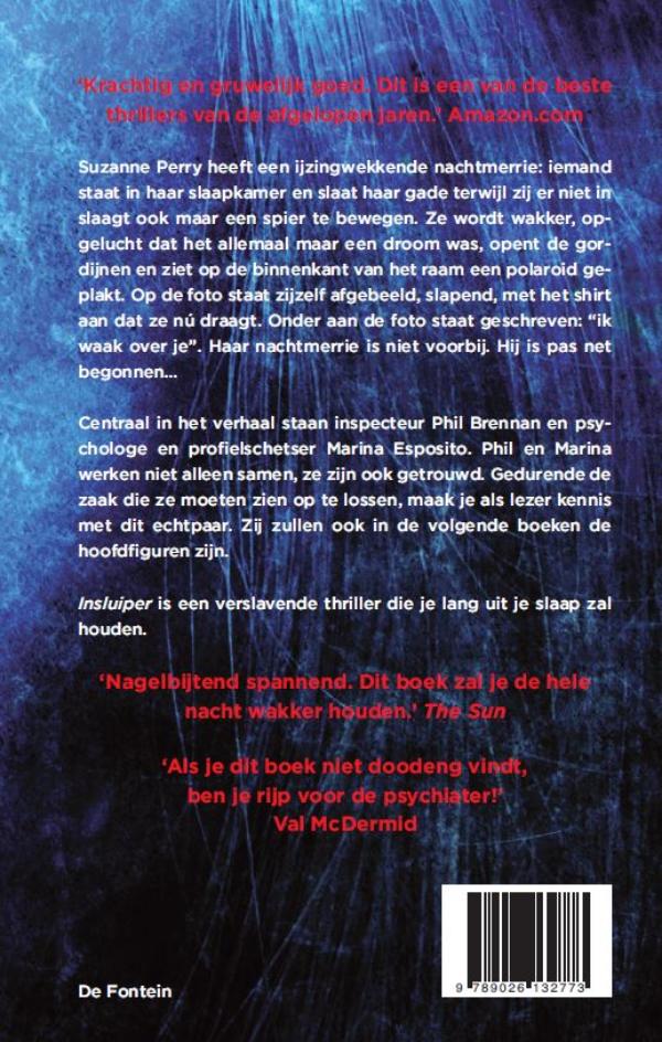 Insluiper is een verslavende thriller over een seriemoordenaar die het leven van zijn vrouwelijke slachtoffers 'overneemt' en over de zeer toegewijde rechercheur Phil Brennan en zijn vrouw, de briljante profielschetser Marina Esposito.