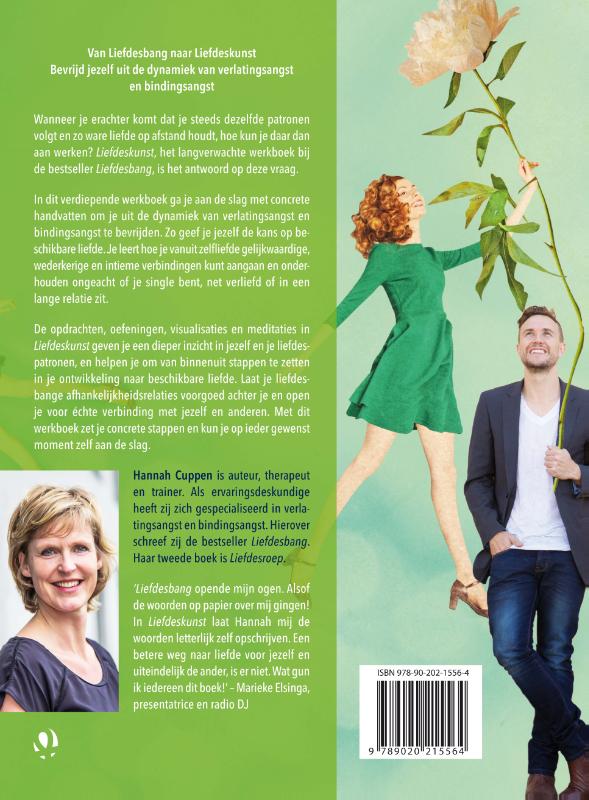 Met dit prachtig vormgegeven werkboek zet Hannah je écht aan het werk, waardoor je uiteindelijk in staat bent om je bindingsangst en/of verlatingsangst om te zetten in liefde voor jezelf en voor die ander. Het is aanbevolen om Liefdesbang gelezen te hebben voordat je met Liefdeskunst aan het werk gaat, maar het hoeft niet.