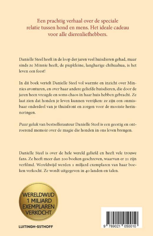 Puur geluk van bestsellerauteur Danielle Steel is een geestig en ontroerend memoir over de magie die honden in ons leven brengen. Danielle Steel heeft in de loop der jaren veel huisdieren gehad, maar sinds ze Minnie heeft, de piepkleine, langharige chihuahua, is het leven een feest!