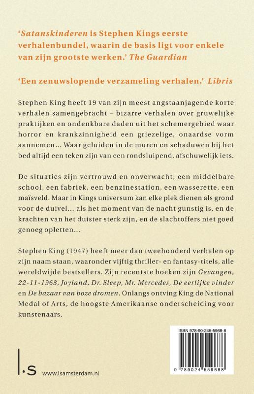 'Satanskinderen is Stephen Kings eerste verhalenbundel, waarin de basis ligt voor enkele van zijn grootste werken.' The Guardian