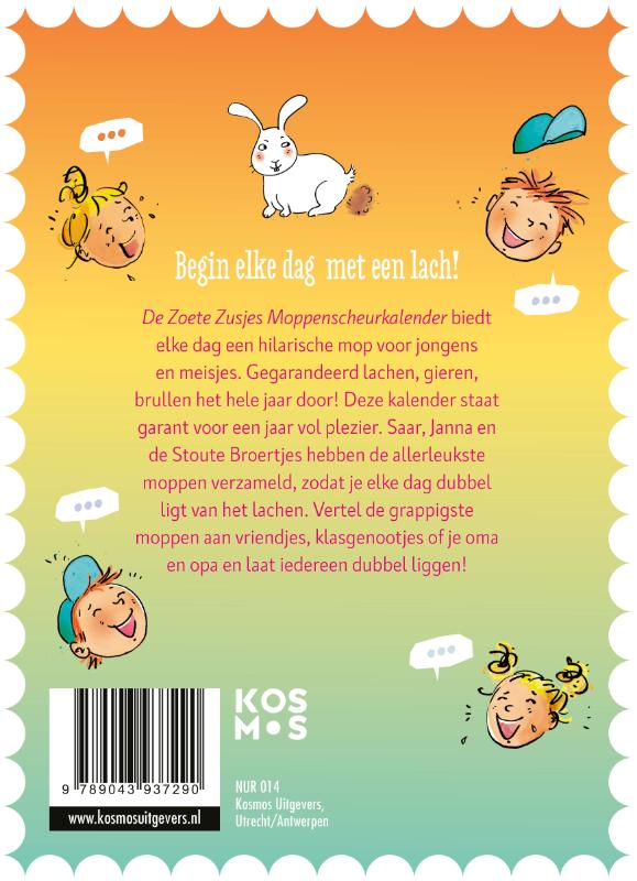 De Zoete Zusjes Moppenscheurkalender 2026 staat garant voor een jaar vol plezier. Saar, Janna en de Stoute Broertjes hebben de allerleukste moppen verzameld, zodat je elke dag dubbel ligt van het lachen. Vertel de grappigste moppen aan vriendjes, klasgenootjes of je oma en opa en laat iedereen dubbel liggen! Een geweldig cadeau voor meisjes en jongens om het hele jaar door van te genieten.