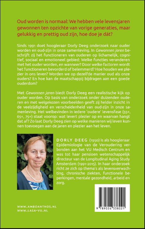 Met Gewonnen jaren biedt Dorly Deeg een andere kijk op ouder worden. Het welbevinden in iedere ‘oudere’ levensfase staat voorop: wat levert plezier op en waar hangt dat vanaf? Haar boodschap: er is geen ‘toverpil’ om veroudering tegen te gaan; je kunt er wél mee leren omgaan.